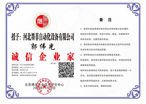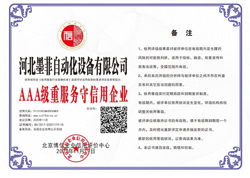 “质量保证,服务完善”是河北墨菲自动化设备有限公司崇高的创新理念
